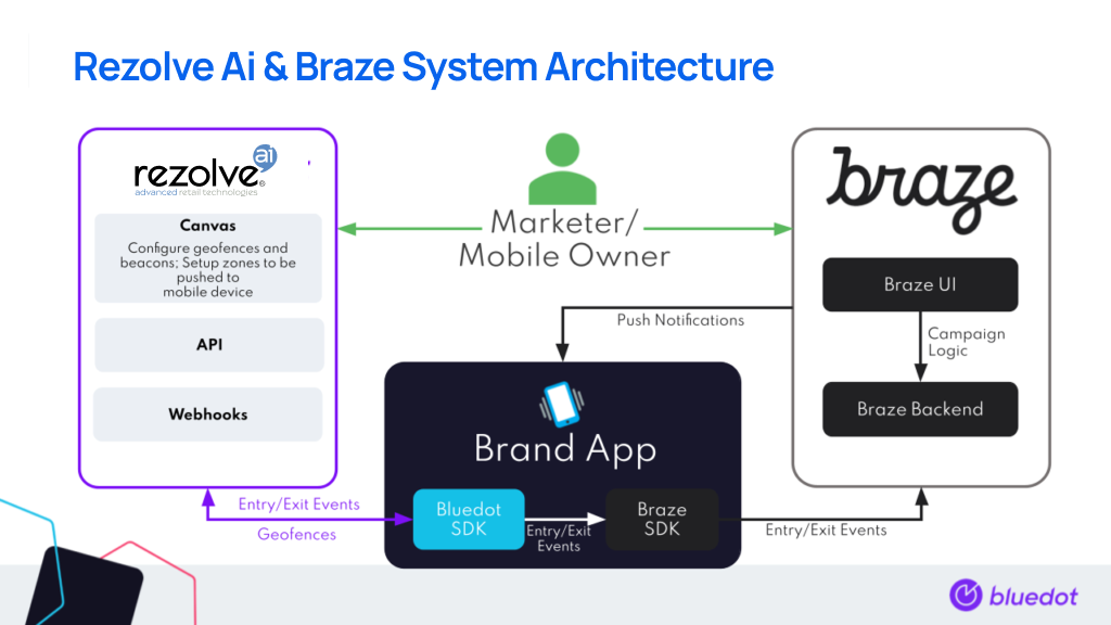 With the combination of Braze’s leading mobile engagement platform and Rezolve's best in class location technology, mobile engagement is taken to the next level. Combine the power of Braze with the precision and scalability of Bluedot’s location services to accelerate growth, drive loyalty engagement and revenue in your app and beyond.