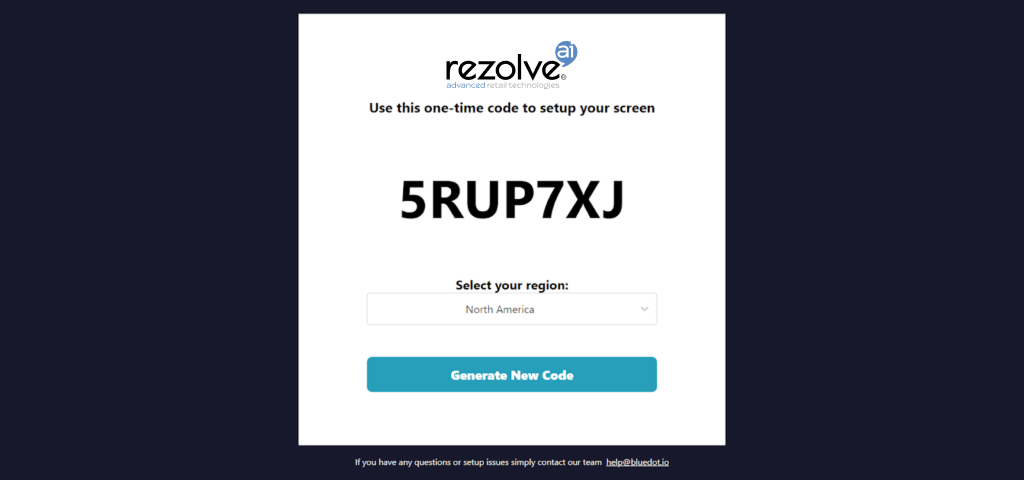 When you navigate to the Hello Screens Linkin Page, you will see a one-time code displayed on the screen. Copy this code and enter it into the linking page in Bluedot’s Canvas UI under the “Hello Screens” tab in the drop-down menu. Once completed, you will be able to use your Raydiant Screen to show your Bluedot Hello Screen.