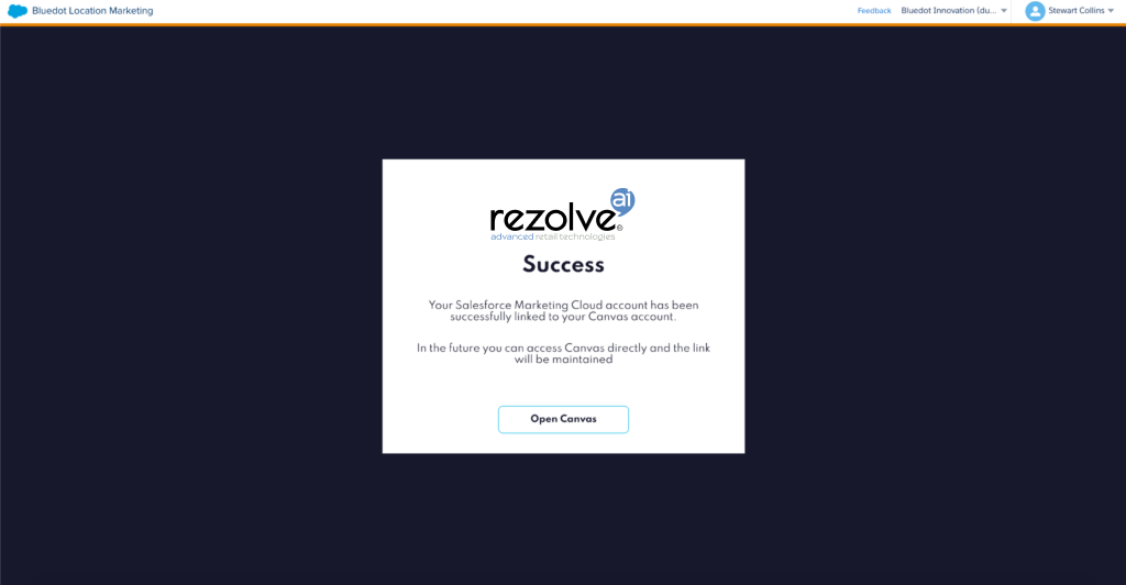 4. Your accounts are now linked. You can create Zones in your Canvas account which can be used to trigger Marketing Cloud customer journeys.